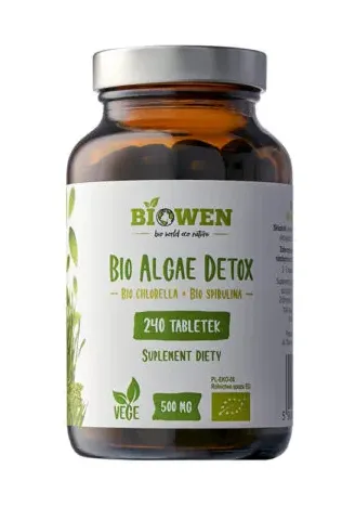 Biowen BIO Algae Detox 500 mg – 240 tabletek wspomaga redukcję tkanki tłuszczowej, ma działanie detoksykacyjne